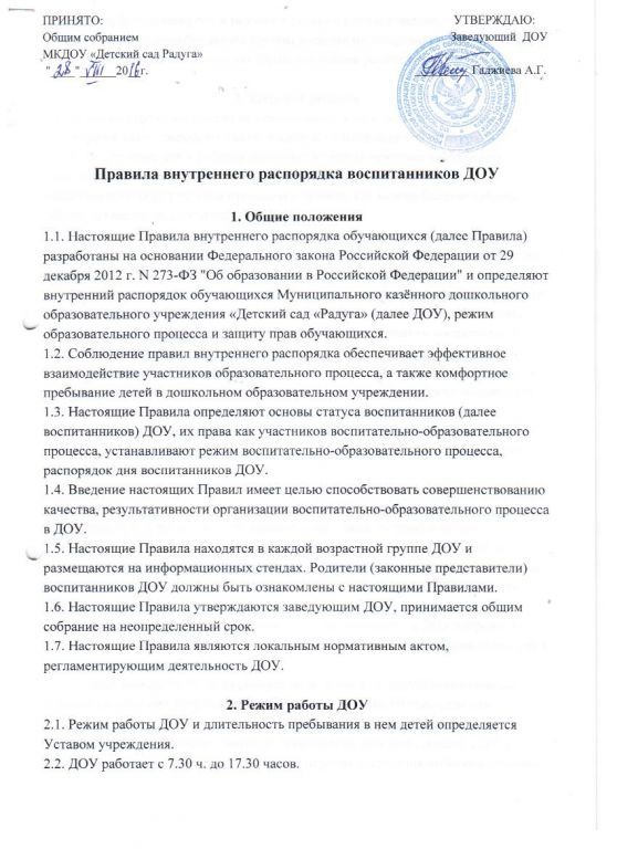 Правила внутреннего распорядка обучающихся (воспитанников)